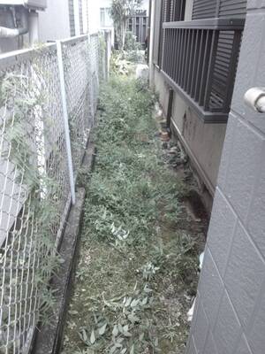 本日は、瑞穂区のお客様宅へ防草シート張りの前準備にお伺いしました。